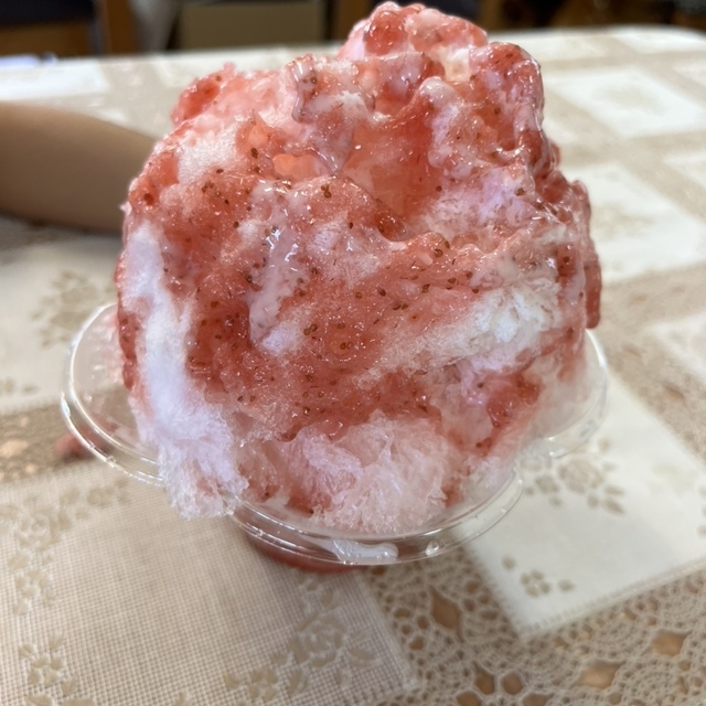 今回は、地元産いちごを使ったかき氷を注文。素材の味がしっかり感じられる、優しい甘さの一杯でした。