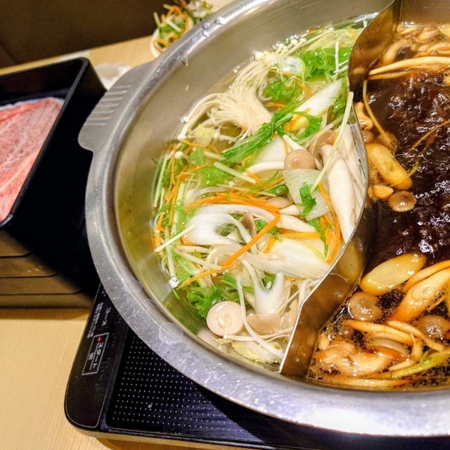 おかわり自由の牛肉や豚肉と、野菜バーから選べる新鮮野菜をお好きなだけ楽しめる「 しゃぶしゃぶ」と「すきやき」が食べ放題のレストランです。